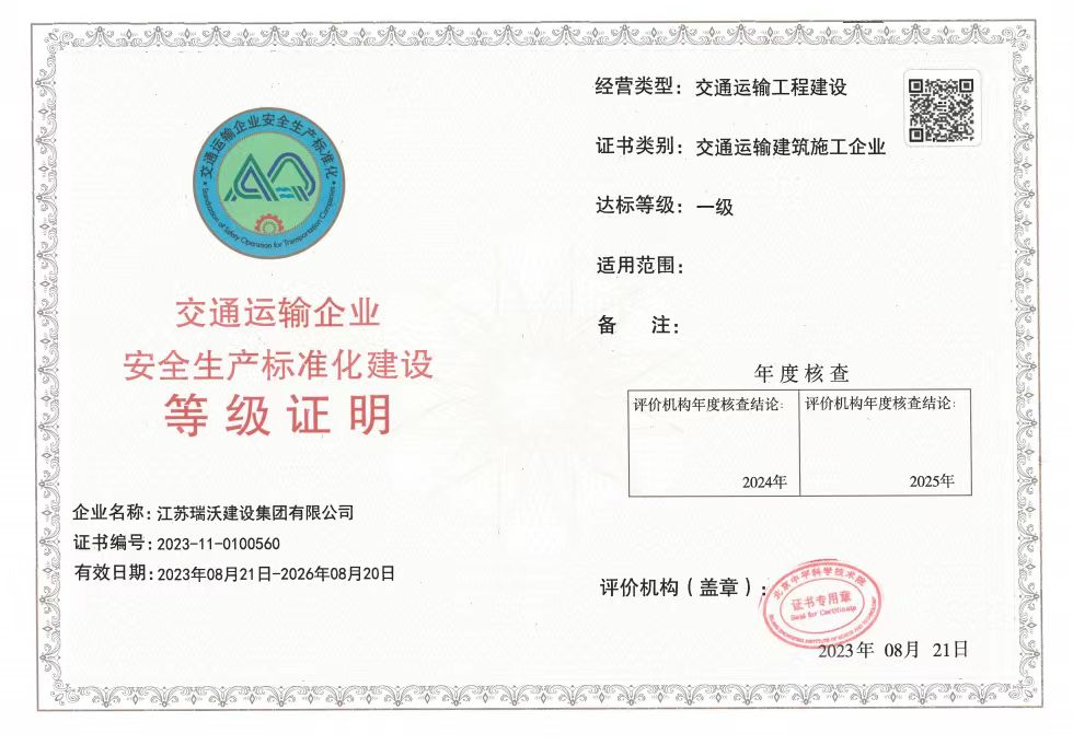 江蘇瑞沃建設(shè)集團(tuán)有限公司成立于2007年,是一家以市政、交通工程建設(shè)為主導(dǎo),集房屋建筑、交通安全設(shè)施、城市道路照明工程、電力工程、隧道工程、航道工程及投融資為一體的綜合性企業(yè)。企業(yè)注冊資本60000萬元,現(xiàn)有各類技術(shù)人員580人,其中中、高級以上人員498人,注冊類人員268人,一、二級建造師166人。公司榮獲“江蘇省建筑業(yè)優(yōu)秀企業(yè)”、“江蘇省五一勞動獎狀”,連續(xù)多年被評為“揚(yáng)州市先進(jìn)企業(yè)”、“江蘇省建筑業(yè)百強(qiáng)企業(yè)”,連續(xù)八年蟬聯(lián)百強(qiáng)企業(yè)基礎(chǔ)設(shè)施類第一名。